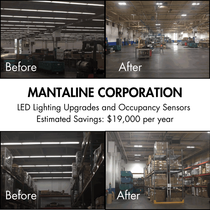 Mantaline Corporation used PACE financing to replace old fluorescent fixtures with LEDs and occupancy sensors. This saves them $19,000 per year, equating to about a 6-year payback on their investment.